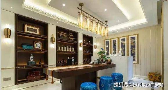 公共区域全部置于一层,搭配独立客卫,打造成奢阔的会客空间,客人来访不会打扰任何家庭成员的起居。充分保证居者私密的同时,亦尽显待客之道。