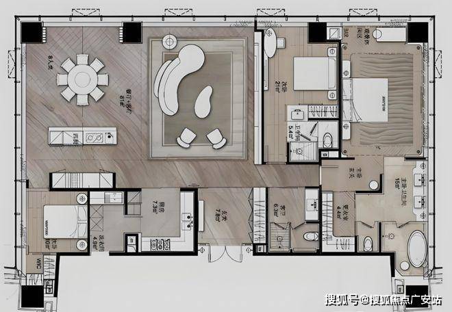 310㎡:4+1房,7.2米南向横厅