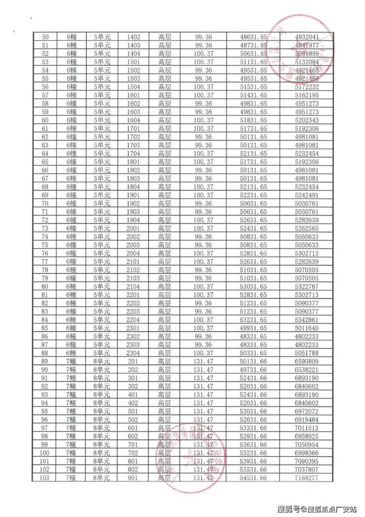 完整一房一价表如下: