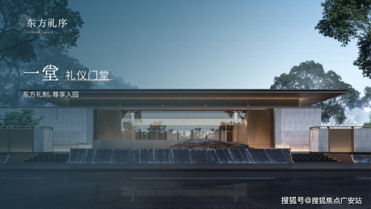 项目大门35米宽6米高,以金镶玉为原型,典雅大气且精致。