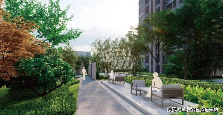 社区容积率2.0,绿化率37%,中央围合花园,引自然山林之景入园,楼栋错落布局形成多组团景观空间,赋予都市繁华中的静谧闲适体验。