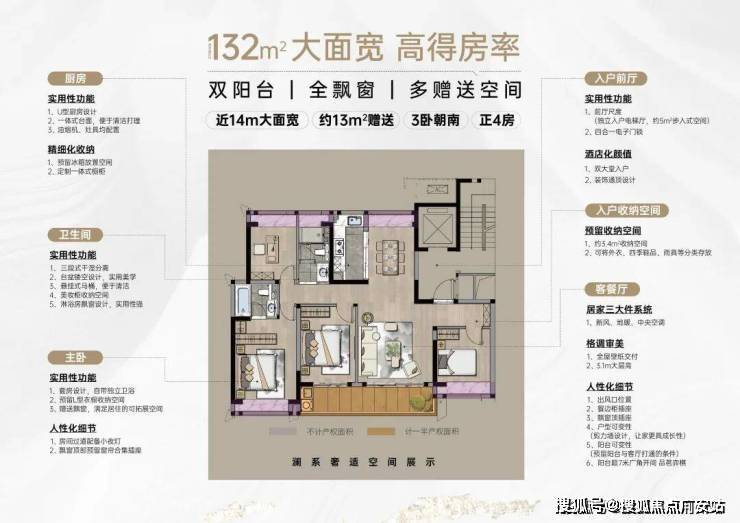 宽境舒居:四开间朝南,近14米超大面宽,南向3卧室,阳光盈满、清风自来