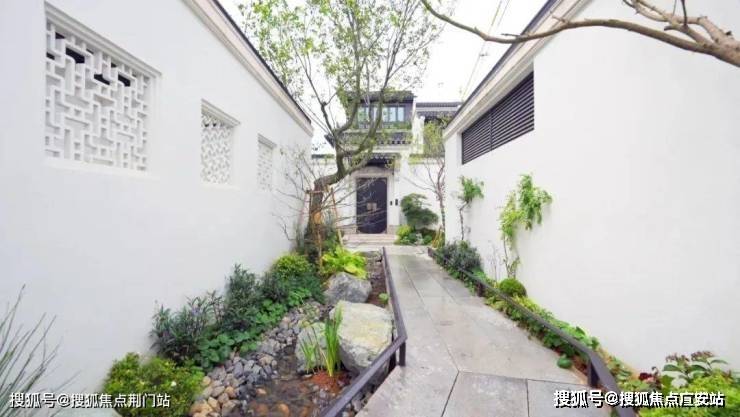 进入项目,归家动线两侧,白墙黛瓦、小桥流水、曲径通幽、芭蕉疏影相间,以两排为一组,围合成二十四条巷道,还原经典的江南坊巷。