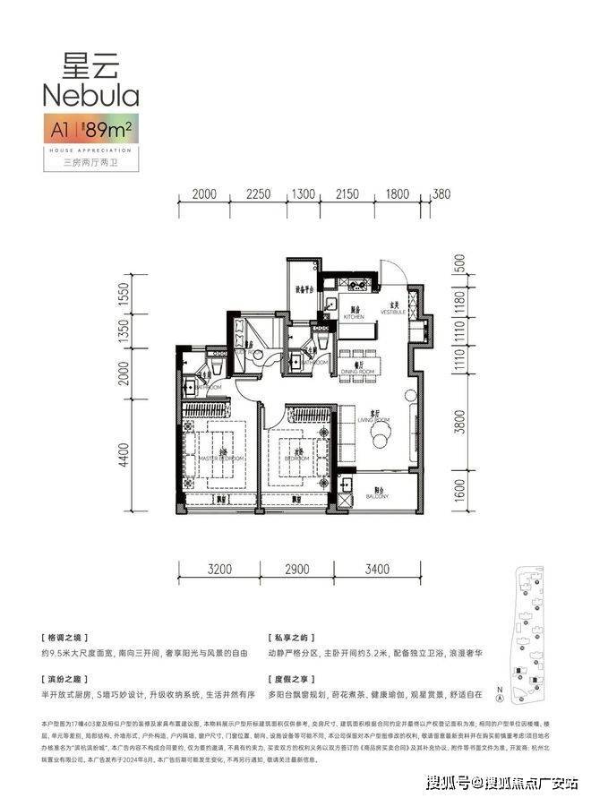 带独立玄关收纳,南边套房主卧带走入式衣帽间+独立卫浴+飘窗,南向约6.4米面宽,带阳台,U型厨房带大开窗,餐客厅一体带约5.8米超长飘窗……该户型更具有生命力。