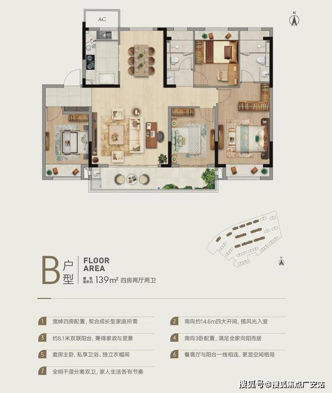 B户型 建筑面积约139㎡ 四房两厅两卫