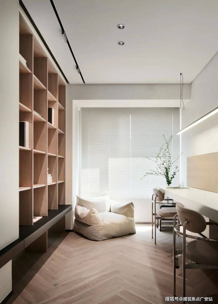 ▲ 新增的书房位于两个卧室之间,大书墙搭配双人位书桌,满足孩子学习的需求