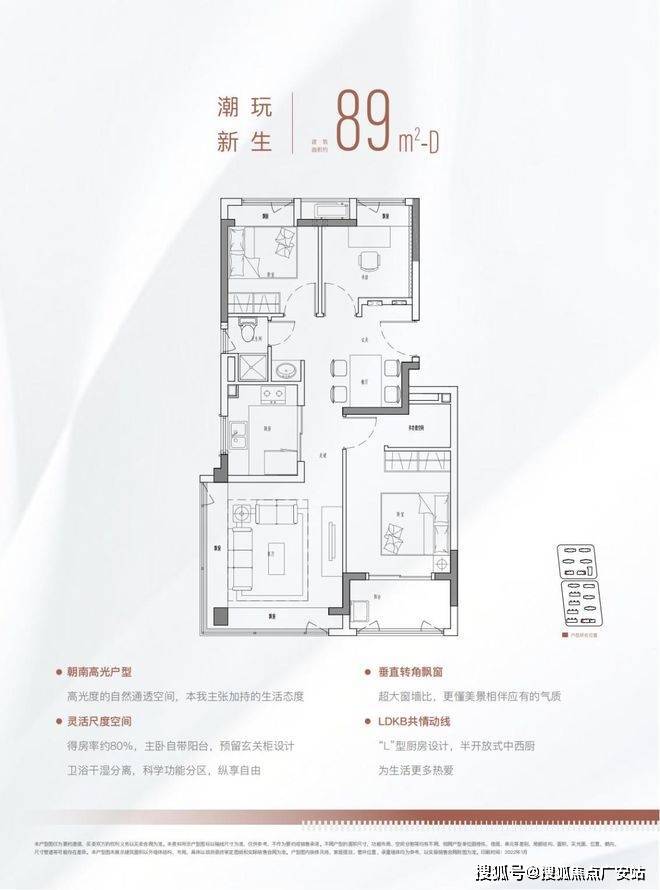 89㎡ 3房2厅2卫(规划)功能户型,入户洗手台规划设计,为业主在疫情常态化的新生活提供更健康的居家生活方式。