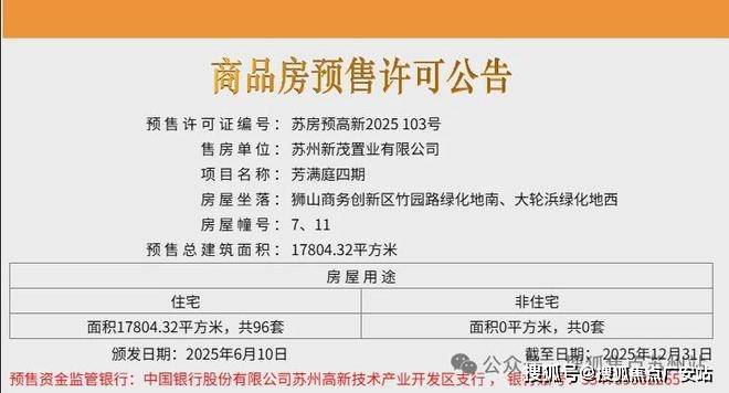 2025年6月10日第四批房源领证,共96套,位于7、11号楼,货值9.58亿。