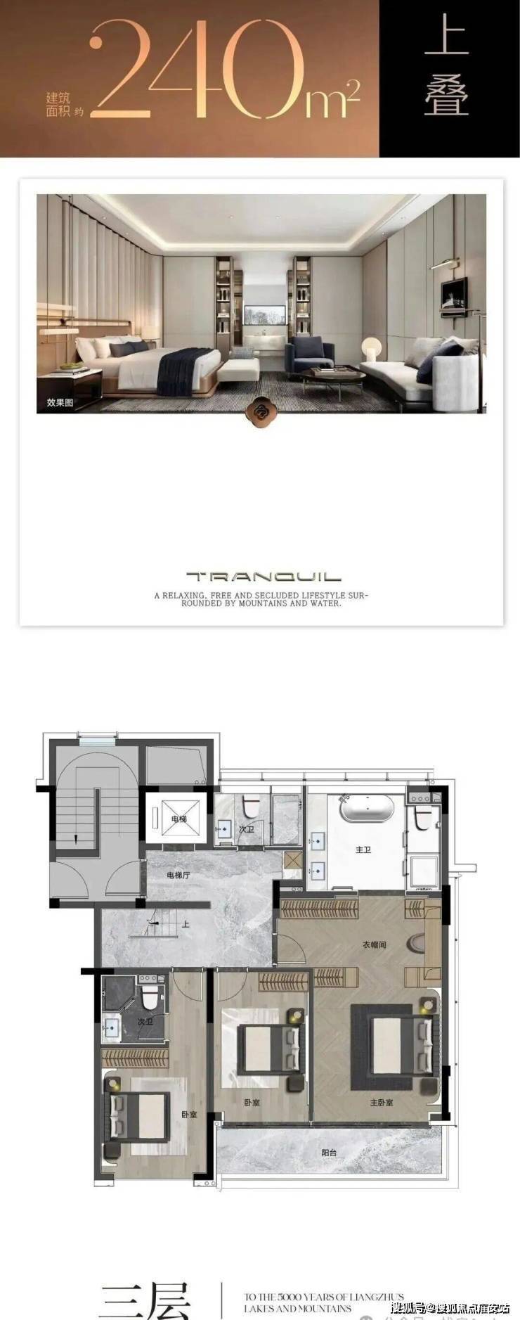 坐落于余杭区,由华景川与余杭交投联合开发,定位为唐风院墅,总占地面积约3.03万㎡,总建筑面积约7.4万㎡,容积率仅1.5,绿化率约30%,规划总户数230户,包含40套唐风合院和190套揽境叠墅,叠排面积240方装标1.5万/平总价830万起。排屋面积270方装标1.7万/平总价1200万起,预计2027年6月交付。