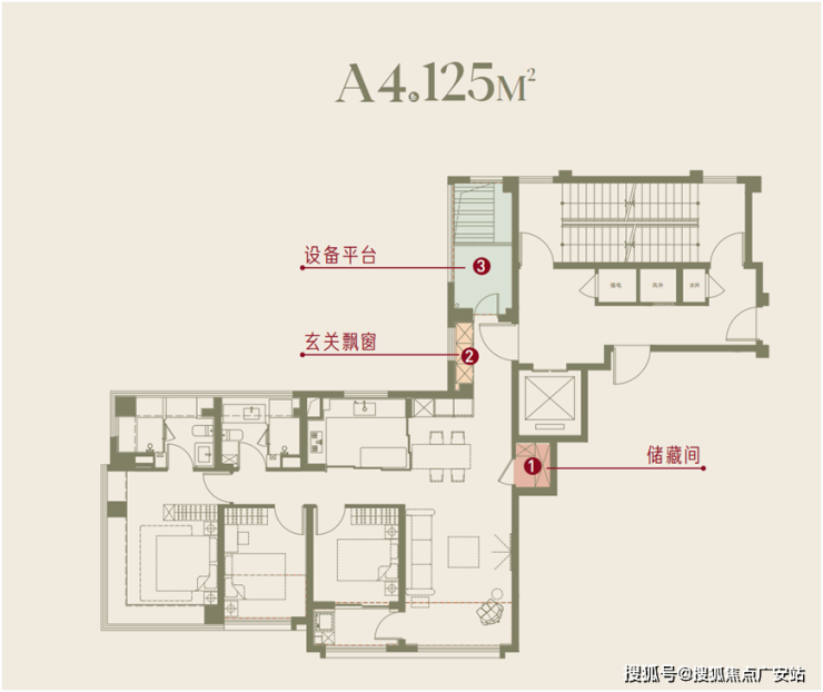 南向面宽达13.4m,四开间朝南,全卧超南。实得率超95%,多了20平空间,三阳台,满飘窗,设备平台,主卧室270°套间设计。层高3.15米。这个户型对比样板房,储藏间更大了,玄关收纳空间更大,收纳空间更多
