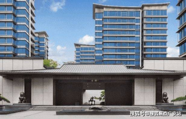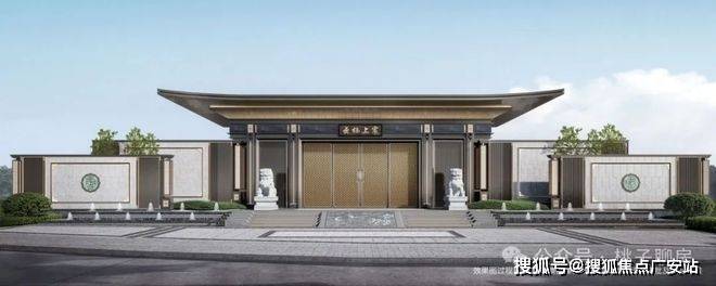 禅境中式风格:双国风大门、三面铝板+玻璃立面、飞檐挑角等元素;