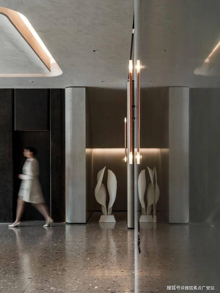 同时大门配有水钵,黑松,这样的搭配不仅视觉上效果更好,也能中和掉材料本身的冷感。上海静安苏河湾1号售楼处电话☎:400-901-6520【开发商售楼处预约看房热线】(一对一热情服务)
