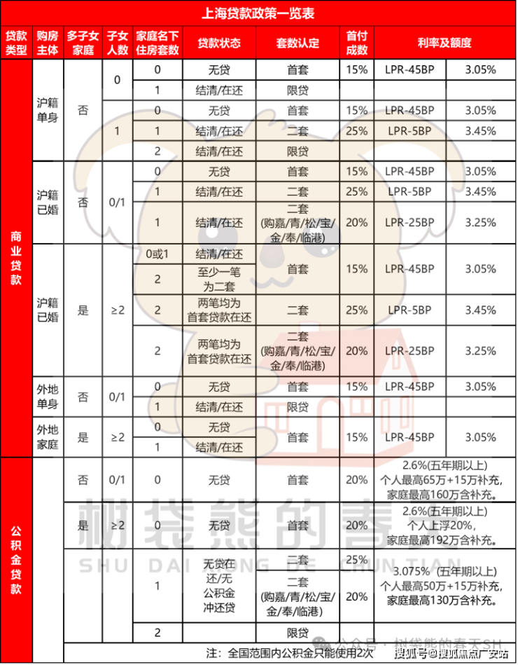 上海贷款政策一览表: