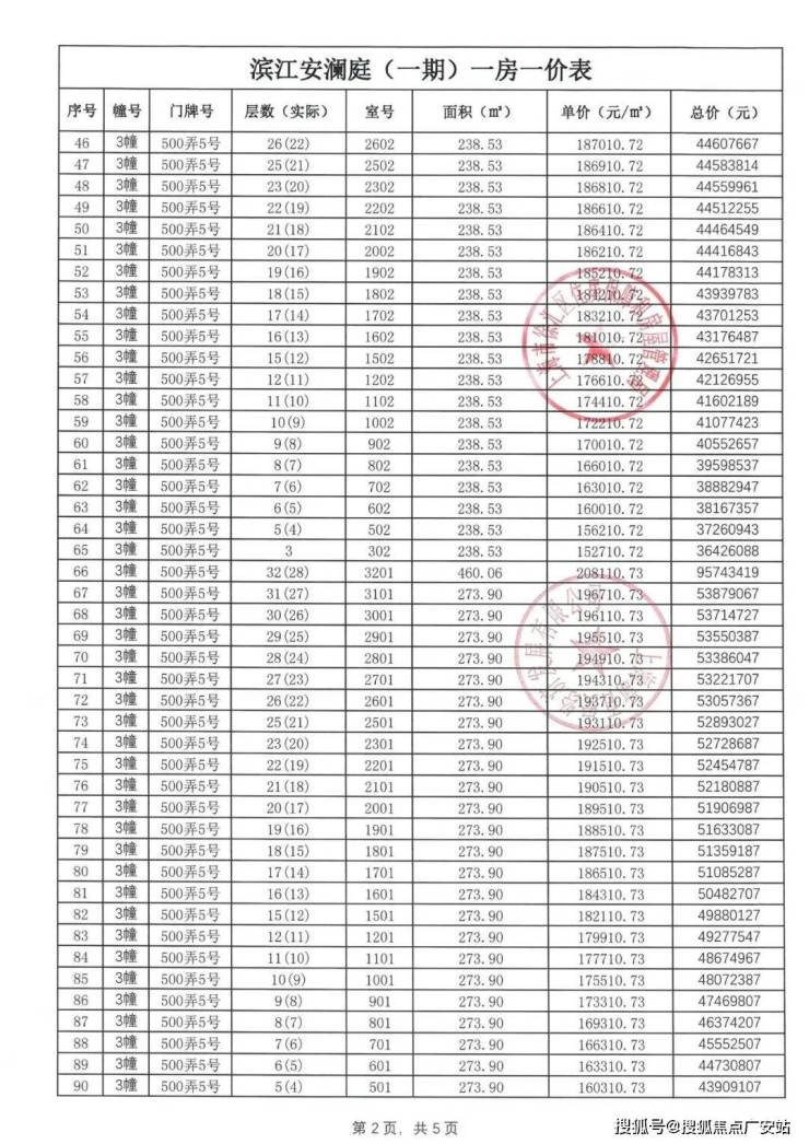 一房一价表