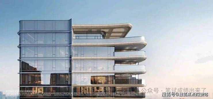 杭序府的外立面采用弧线转角阳台+蓝灰色钢化LOW-E玻璃,公建化立面拥有超高窗墙比。同时,大量曲线元素的运用,不仅造价昂贵,而且极具辨识度,成为区域的颜值担当。