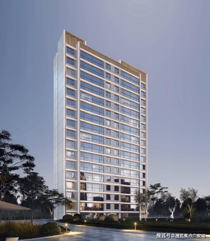 冠顶运用中式古典元素,竖向格栅以及现代元素金属,做到了朦胧优雅不沉闷,创造出光与影的朦胧之美,尽显建筑的和谐、韵律之美。