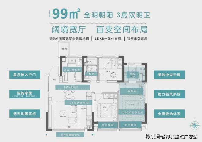 当大多数户型还在纠结“要功能还是要舒适”时,文泽华府建筑面积约99㎡户型,用约3米层高+约5米南向宽厅,赋予空间前所未有的呼吸感。