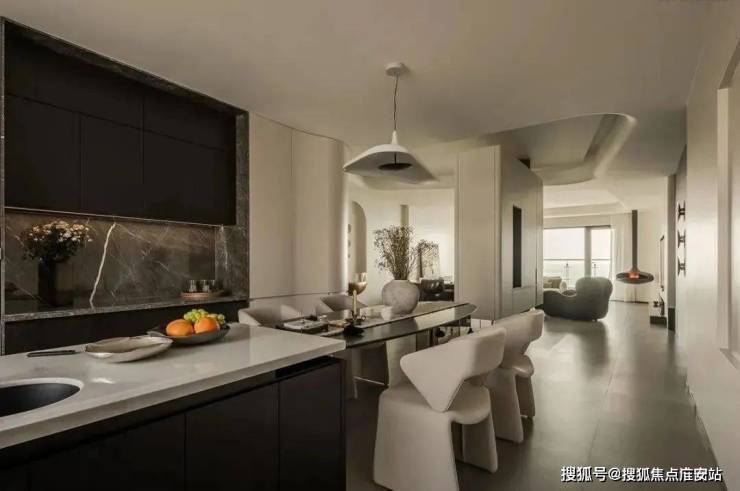 顺着动线一路前行,角落处的餐吧台优雅地展开着,极具仪式感的就餐盛宴,就此开启。