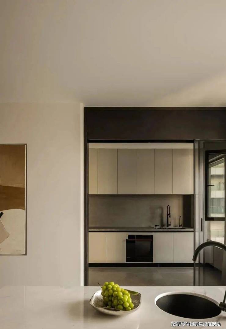 客餐厨严谨的一体化结构之下,经由日光打破,暖灰色的背景更显生活的烟火气了。