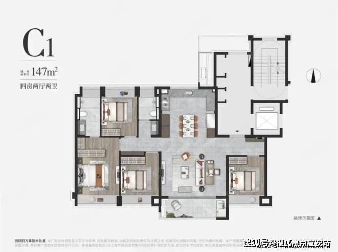 该户型贴合当代人居生活习惯,既适合三口之家小太阳家庭,也可以是三代同堂,每个人都能拥有独立空间。