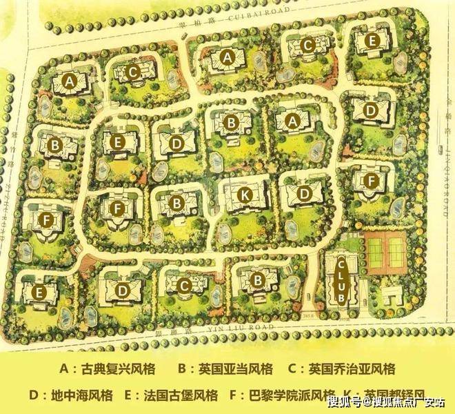 不同风格的建筑交叉分布于整个社区,绝大多数别墅的四周都至少有三种不同风格的建筑,四下望去,满眼尽是是不同的欧式风情。