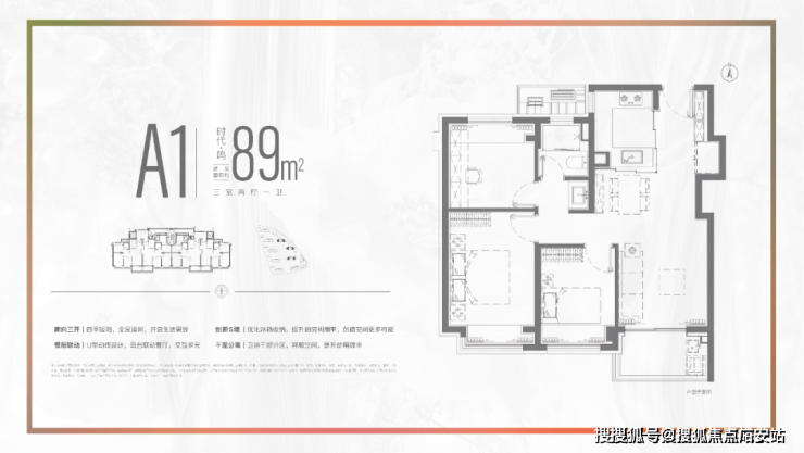 建面约89㎡(3室2厅1卫)