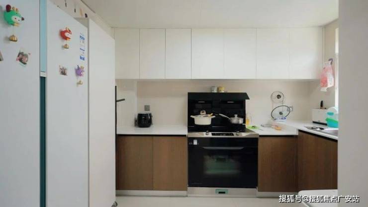 厨房的配色采用“时空三明治”策略——奶白悬浮于上,栗棕沉淀于下,灰白托底其间,通过色彩心理学与实用主义达成精妙平衡。
