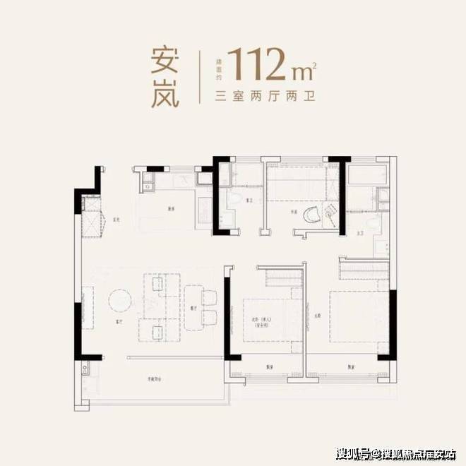With a construction area of approximately 112 square meters, [Anlan] offers 3 bedrooms, 2 living rooms and 2 bathrooms