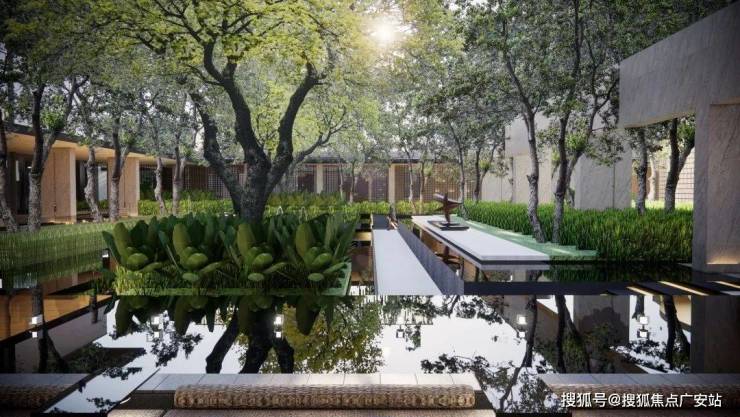 社区的设计思路是以安缦、丽思卡尔顿等精奢酒店的生活方式为标准,营造出极致松弛感的氛围。内部园林更是采用了现代手法,呈现出一个富有层次感与美感的社区。
