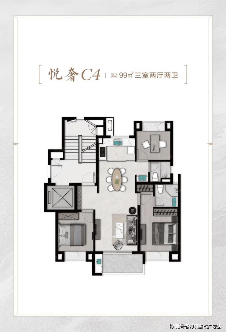 3室2厅2卫,建面约99㎡,总价约344万。
