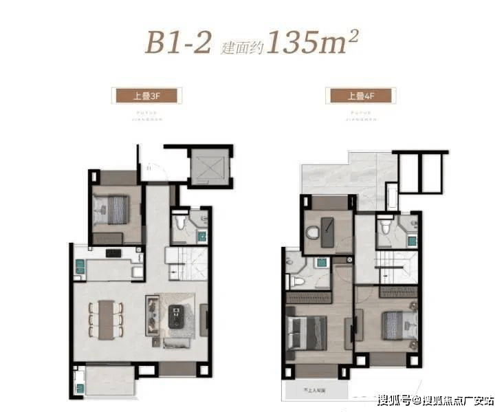 叠墅:建面约123-145㎡,主打空间感,下叠带庭院,上叠有露台。