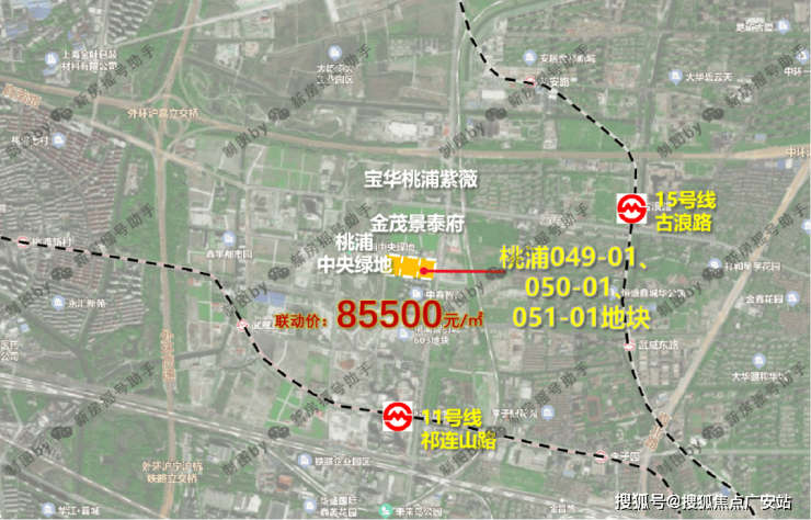 2023年8月,上海二批次土拍,宝华&东苑以总价328800万元成交普陀区桃浦科技智慧城(W06-1401单元)049-01、050-01、051-01地块,地块出让面积30126.9㎡,容积率2.5,溢价率4.05%,楼板价43655元/㎡,房地联动价85500元/㎡。