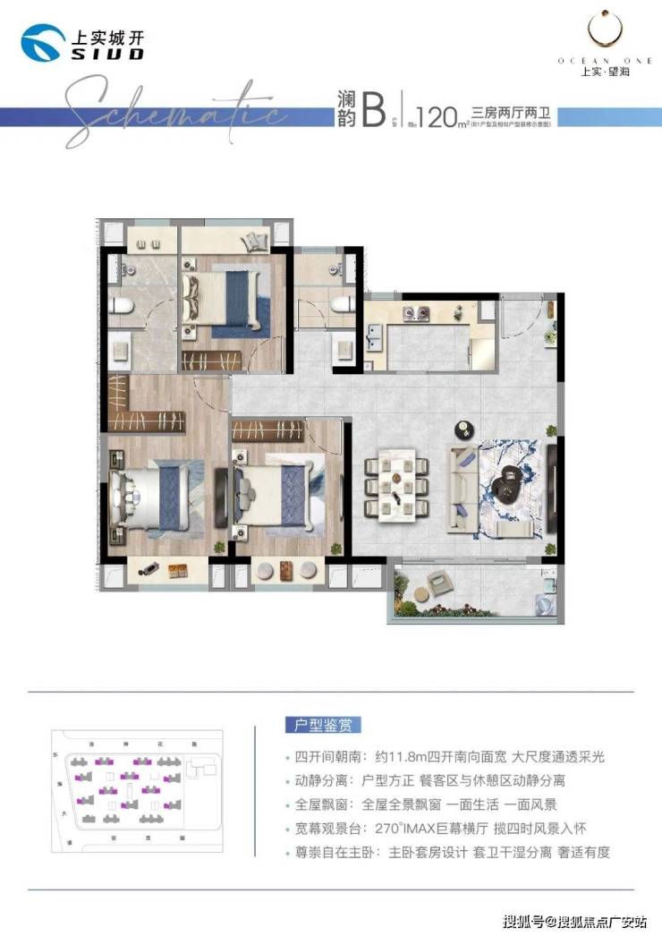 项目约100㎡3房2卫的户型把实用性做到了极致,总价虽低,但能满足业主从二人世界到二胎生活的全生命周期需求。