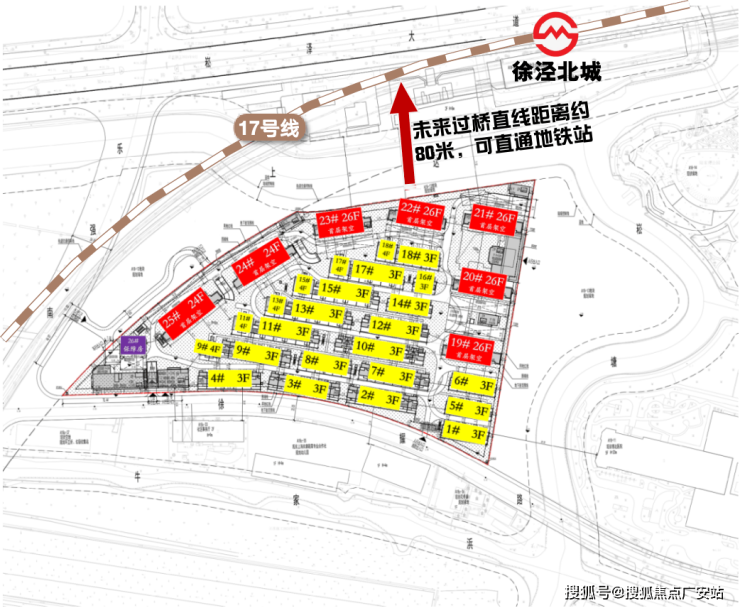 地块位于17号线徐泾北城站上盖,根据项目规划设计方案,项目规划建设2栋24层、5栋26层高层住宅,6栋4层多层住宅及18栋低层住宅,预计将推出高层、叠加、联排产品。