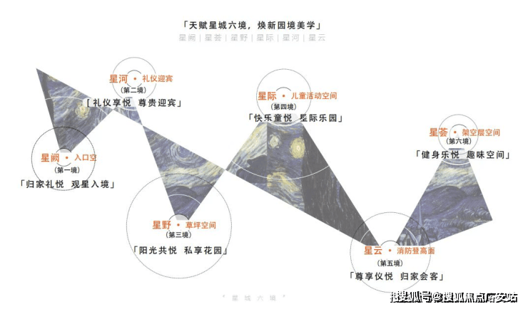社区方面景观方面,项目以现代手法结合传统精髓的创新设计与纯净的星空相互融合,将建筑、文化、艺术与景观完美交融。筑造出星阙、星荟、星野、星际、星云、星河六大盛境,营造中央景观“景阔似海、品如繁星”的高品质人居环境。