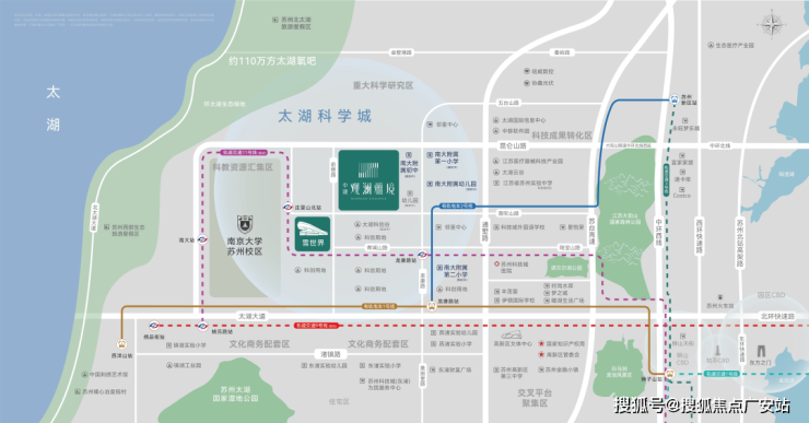 【世界级湖区科创中心】太湖科学城是落实长三角一体化国家战略,打造长三角国家创新中心,建设世界级生态湖区、创新湖区的重要载体,未来将建设5大功能板块,包括:重大科学研究区、科教资源汇集区、交叉平台集聚区、科技成果转化区、文化商务配套区。被纳入苏州市“十四五”规划的太湖科学城,板块发展潜力巨大,势必会成为苏州下一个价值爆点。