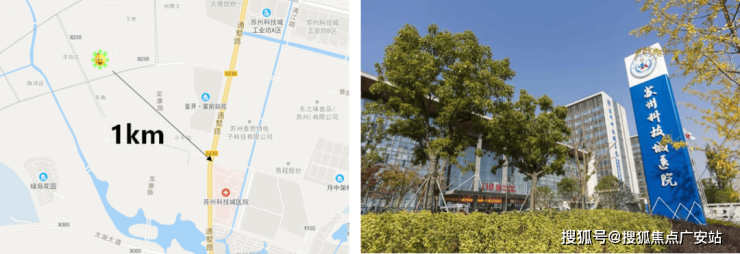 【近在咫尺的公共医疗】科技城医院,作为一家三级综合性医院,距离本案直线距离仅1km。