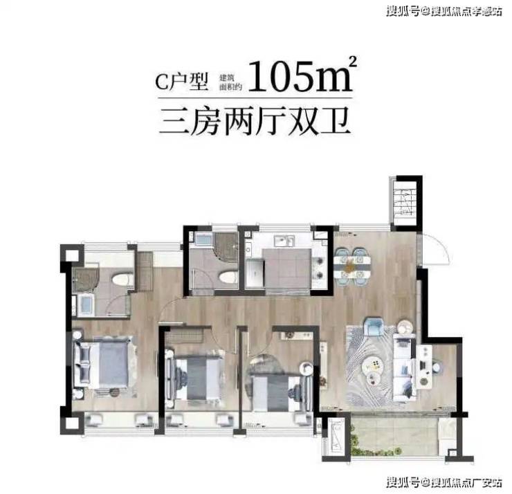 约105㎡|3房2厅2卫(得房率约81%)