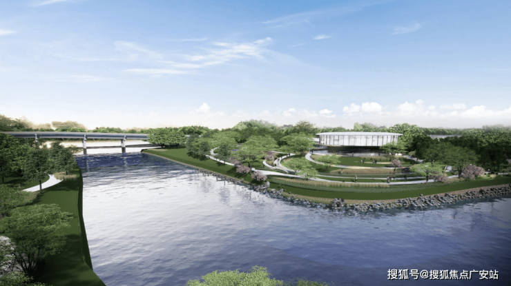 一南一北两个开放式绿地公园,构筑出两侧的滨水活力空间,从而缝合出一条项目全区域的生态活力滨河绿廊