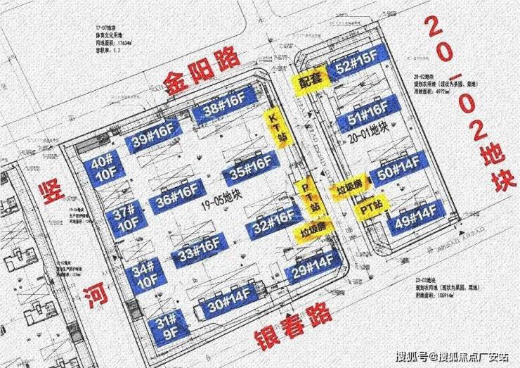 19-05地块:拟建7栋16F高层住宅、3栋9F高层住宅、1栋14F高层住宅、1栋10F高层住宅以及若干配套用房。