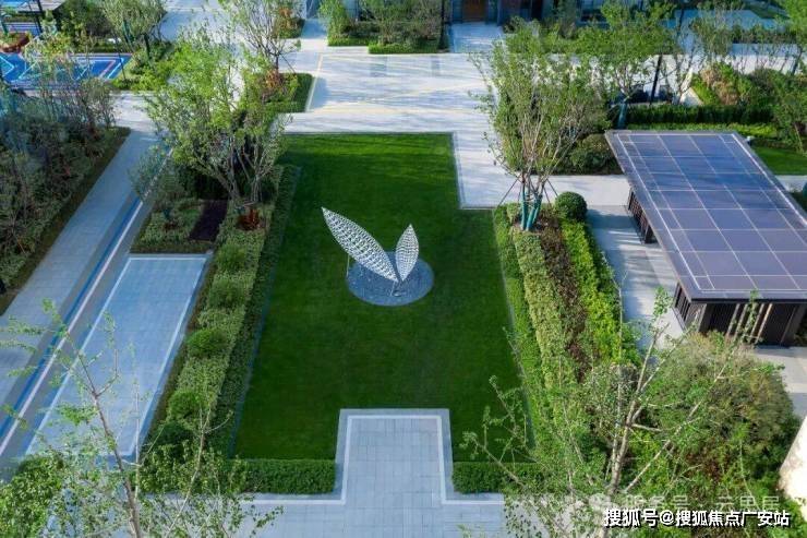 园林实景:中央景观轴串联三个主题花园,绿化率高达35%