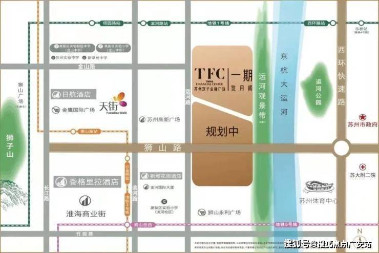 地铁:1号线滨河路站约500米,3号线狮山路站、沙金桥站及5号线环绕