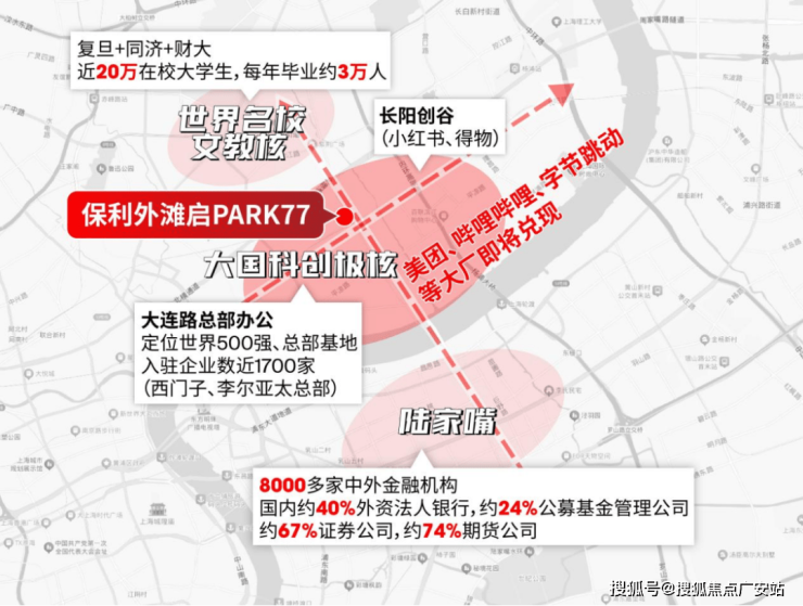 至此,保利外滩启PARK77左拥大连路总部办公,右揽大创谷创新创意产业,南面杨浦滨江科创总部秀园区,北靠世界名校的高精智人才群。真正坐拥时代的发展支点。