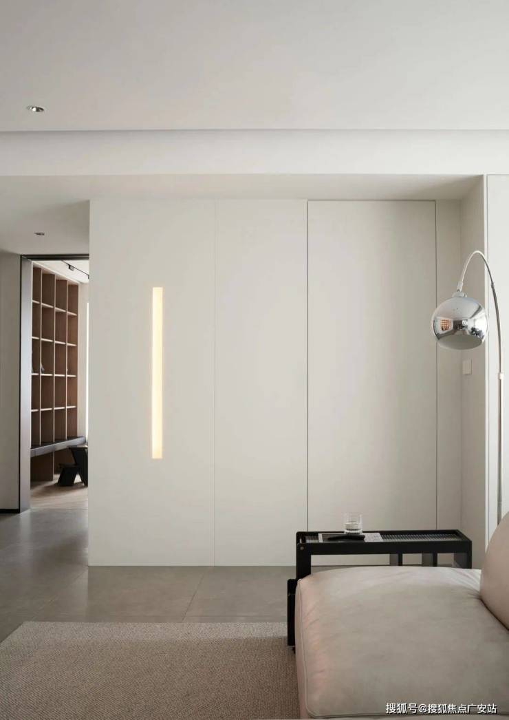 ▲ 沙发旁的主卧入口做隐形门设计