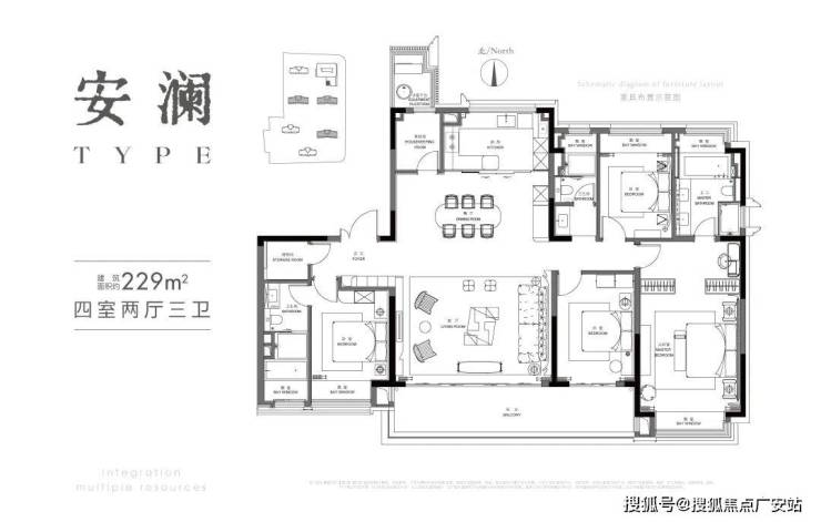 建面约229㎡户型分析图