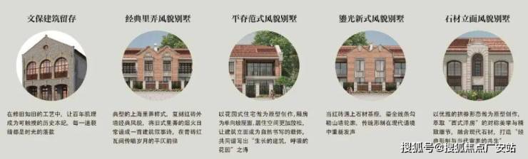 「外滩源著·复兴里」设计共有5大风貌立面类型:经典里弄别墅、平脊范式别墅、鎏光新式别墅、石材立面别墅,1.13超低容积率社区的品质生活无出其右!