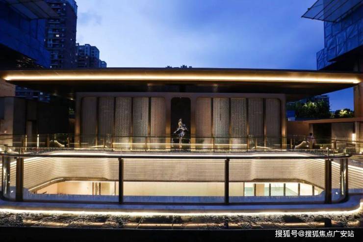 整体长约18米、进深约9.5米的下沉庭院——星池雅宴,将空间意境与社交属性的精准定义,引入“琉璃光院”的通透与灵性,将玻璃砖景墙与金属网水幕作为空间的核心元素,尽显海派雅奢风情。