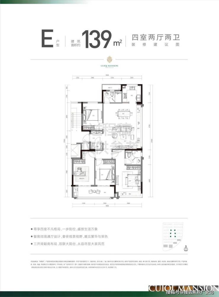因为洋房天然的得房率优势和滨江的空间设计能力,翠栖府的户型得房率近90%,面积横跨建面约97~139㎡,基本都没有浪费空间,套内实用面积远超板块同级高层产品。