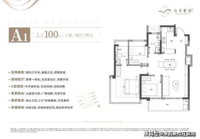 首付仅需56万起,就能在中建山水雅境买到一套建面约100㎡3房2卫神户型。