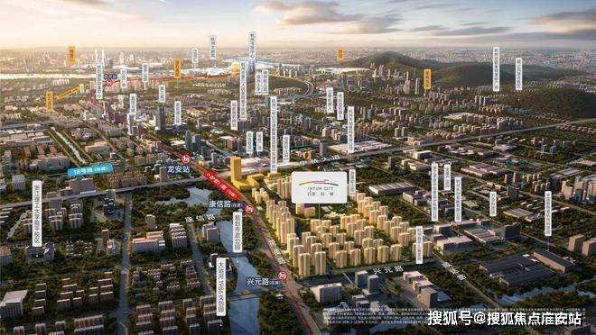 ◎流量广场:于兴元路站(在建)、康信路站(在建)、南侧公园三大节点打造流量广场,以垂直交通核,盛迎不同方向的归来。